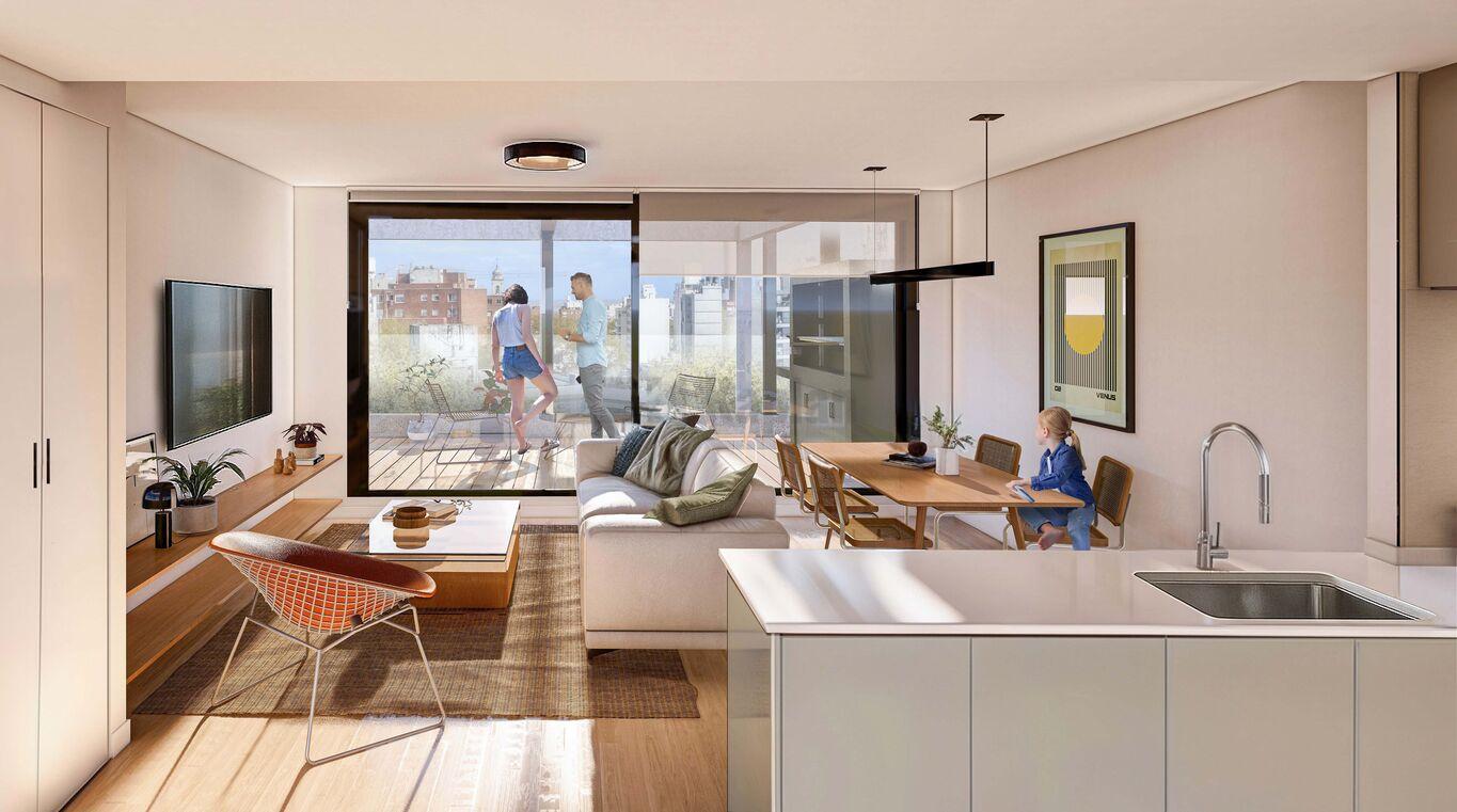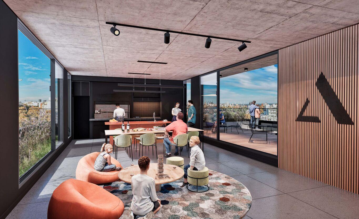 Todas las unidades cuentan con espacios de generosas dimensiones y patios o terrazas de uso exclusivo. El diseño combina materialidad contemporánea con integración de verde en fachada, generando un edificio de identidad única dentro de la línea Delta.