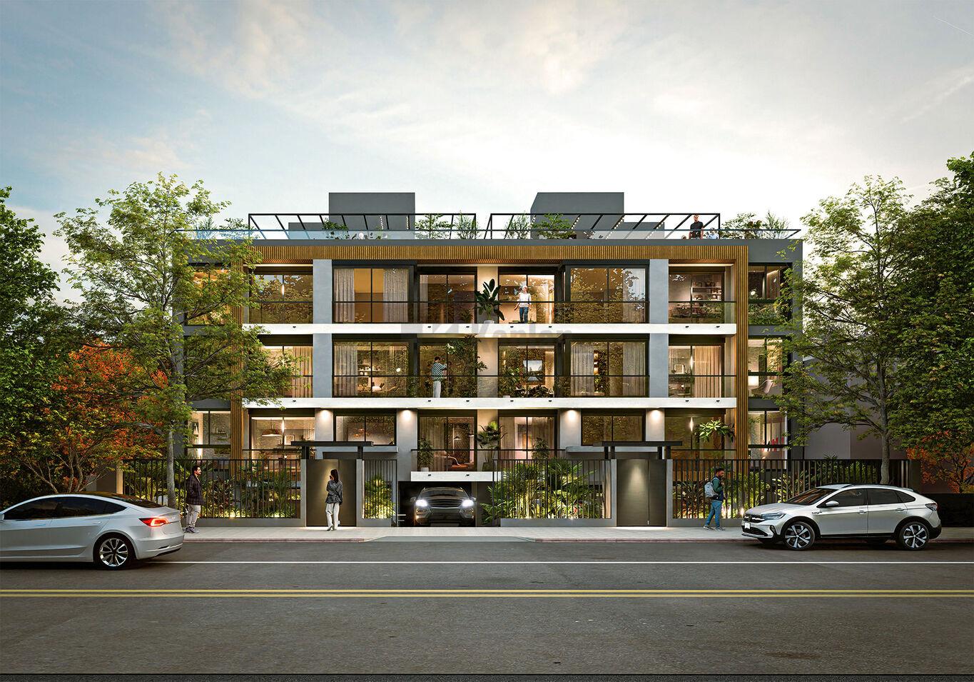 Cíclades Prado en un condominio de tres edificios, IOS, PAROS, NAXOS. implantado en un predio que atraviesa la manzana y le abre frente a dos avenidas icónicas del barrio: Av. Agraciada y Av. 19 de Abril. El proyecto cuenta con 41 apartamentos distribuidos entre monoambiente, 1 y 2 dormitorios. La propuesta se completa con una barbacoa cerrada con terraza lounge en el Rooftop.