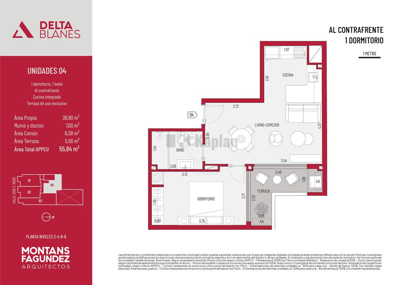 Todas las unidades cuentan con espacios de generosas dimensiones y patios o terrazas de uso exclusivo. El diseño combina materialidad contemporánea con integración de verde en fachada, generando un edificio de identidad única dentro de la línea Delta.