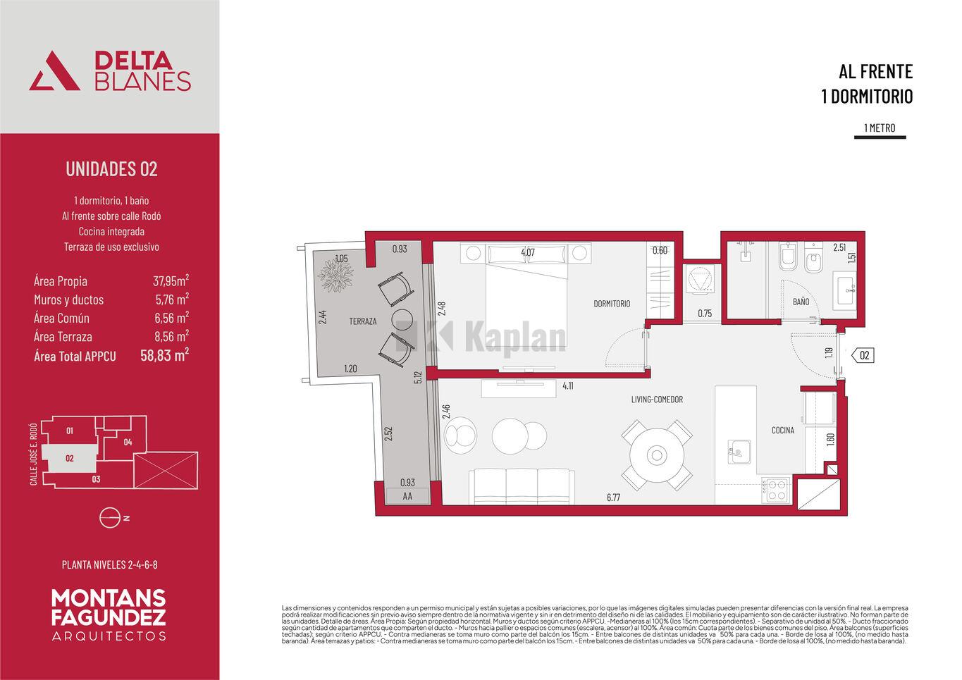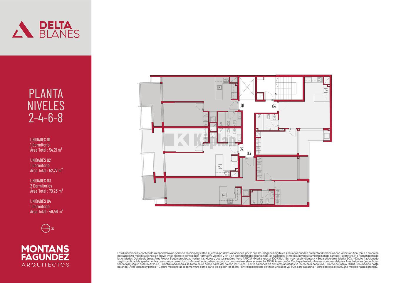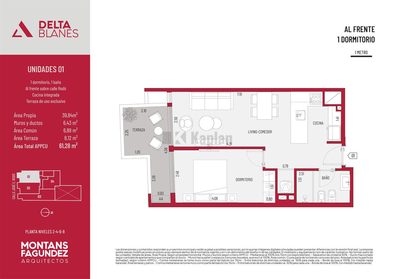 Todas las unidades cuentan con espacios de generosas dimensiones y patios o terrazas de uso exclusivo. El diseño combina materialidad contemporánea con integración de verde en fachada, generando un edificio de identidad única dentro de la línea Delta.